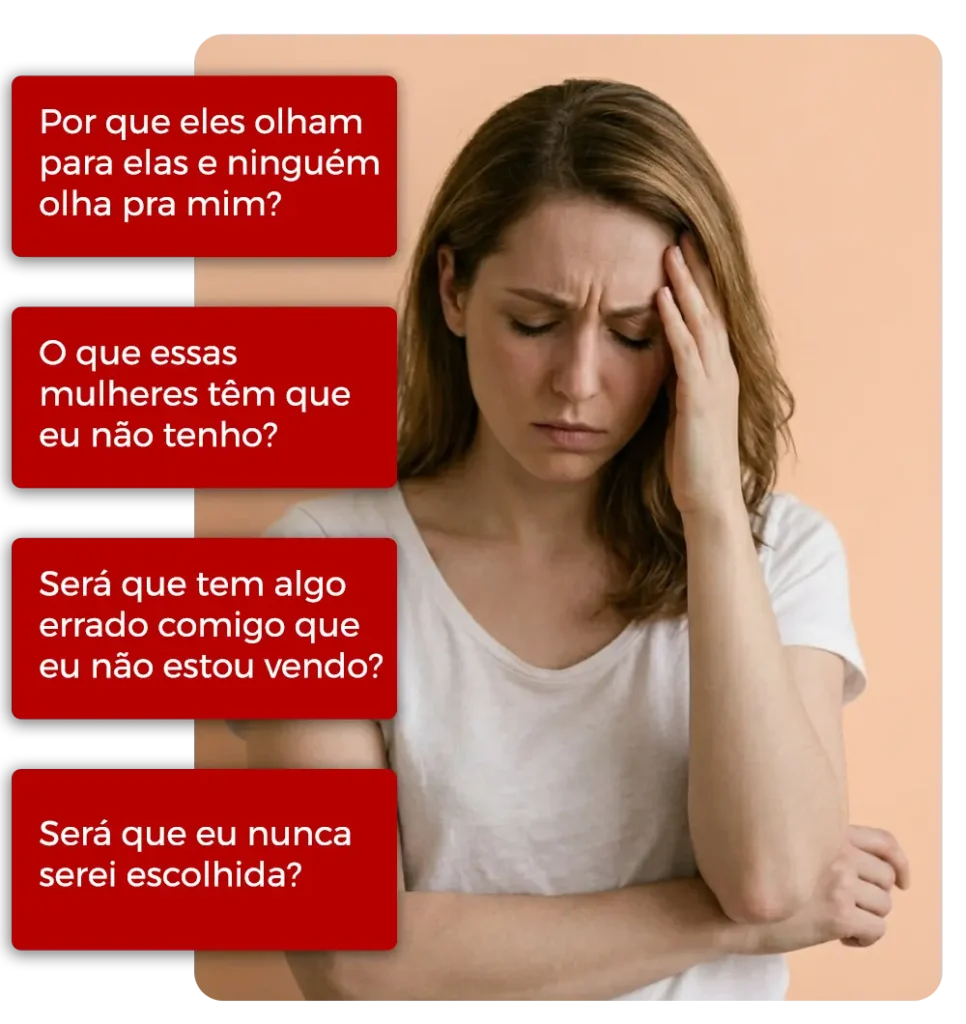 Para qualquer mulher que quer se tornar mais desejada pelos homens que ela quer — independente da idade ou aparência. Se você sente que os homens certos não te enxergam do jeito que você merece, esse curso é para você.